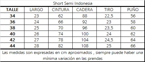 SHORT TIRO BAJO SEMI ELASTIZADO INDONESIA